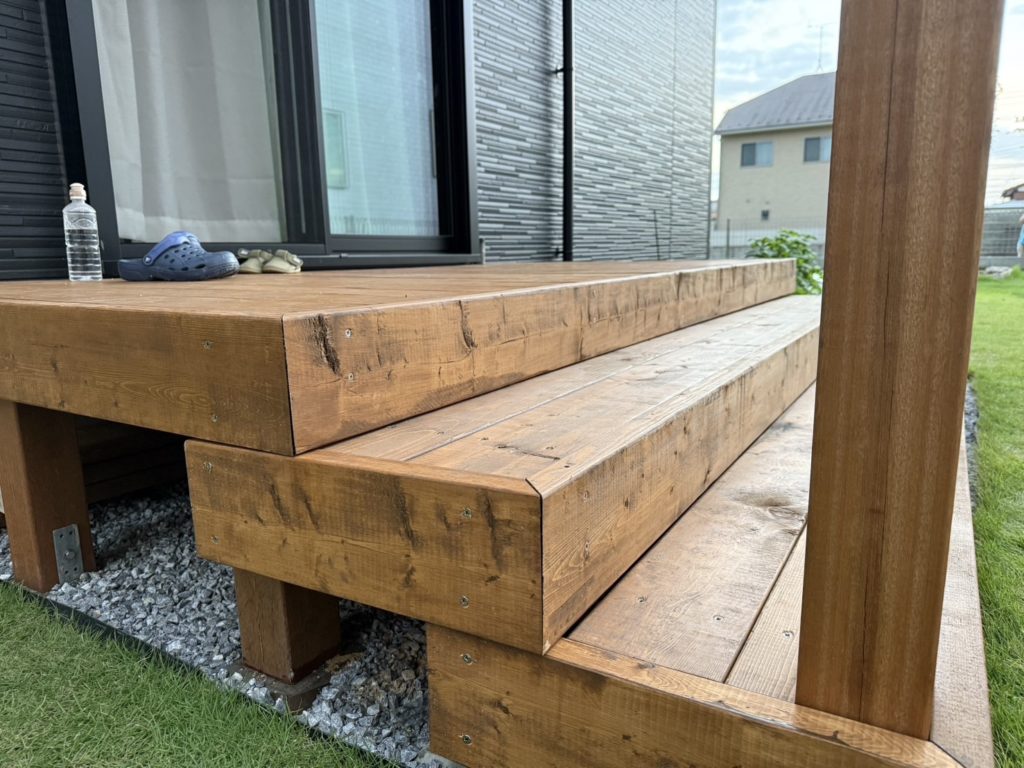 ウッドデッキの寿命を左右するのは、地面からの湿気にさらされやすい**柱や根太(構造の土台)**です。ここに腐食に強い素材を使うことが、長寿命化への鍵となります。
