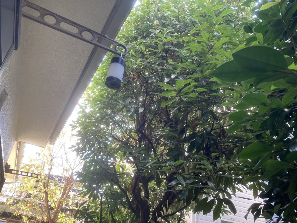 木は2階のベランダ付近まで伸び、枝葉もかなり混み合っている状態でした。